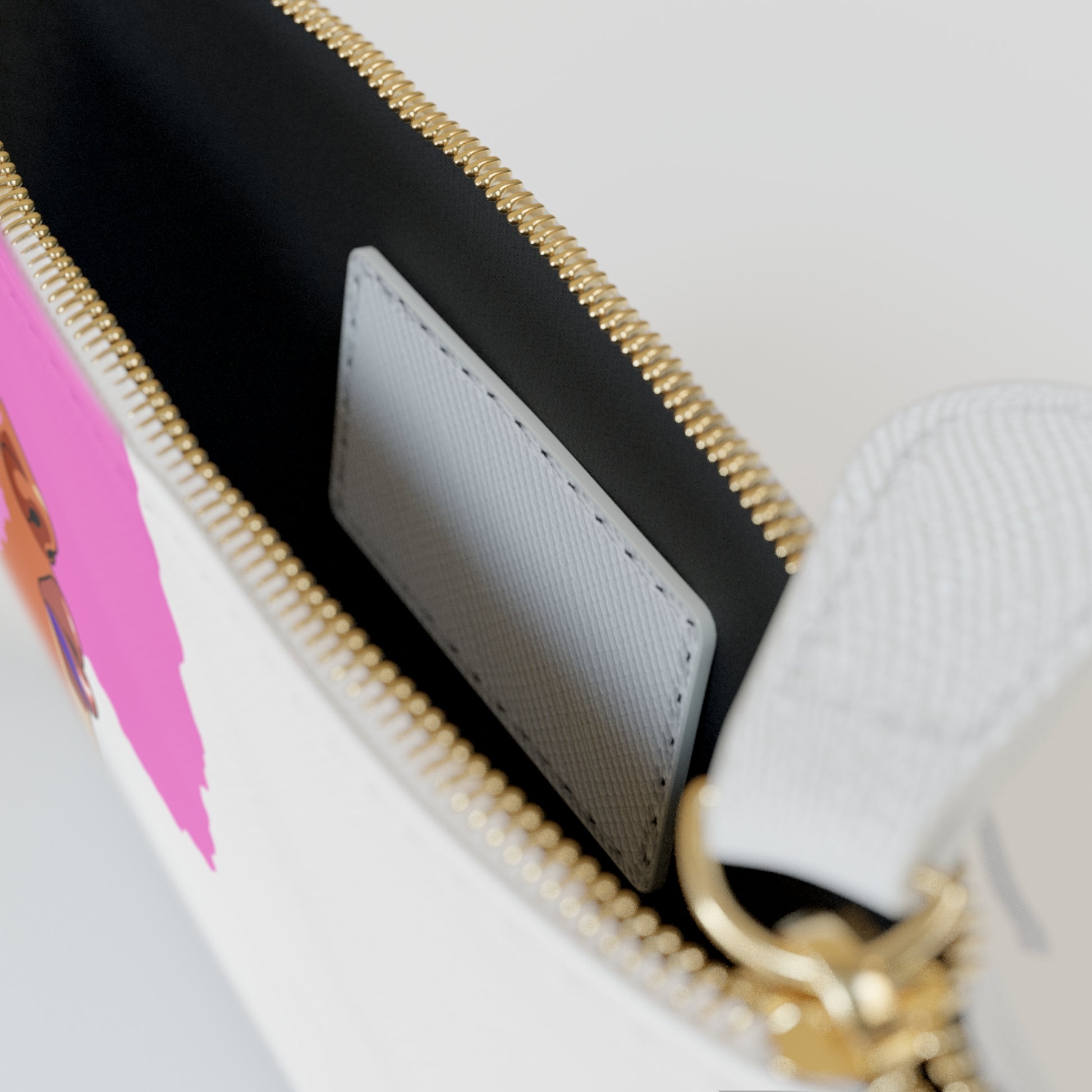 Designed to be chic and highly portable, this mini personalized clutch bag is made for the fashionista on the go. It can hold everyday essentials such as a phone, a wallet, and keys. It features a zip fastener and it is made of vegan, cruelty-free leather that can accommodate your custom designs on both sides.