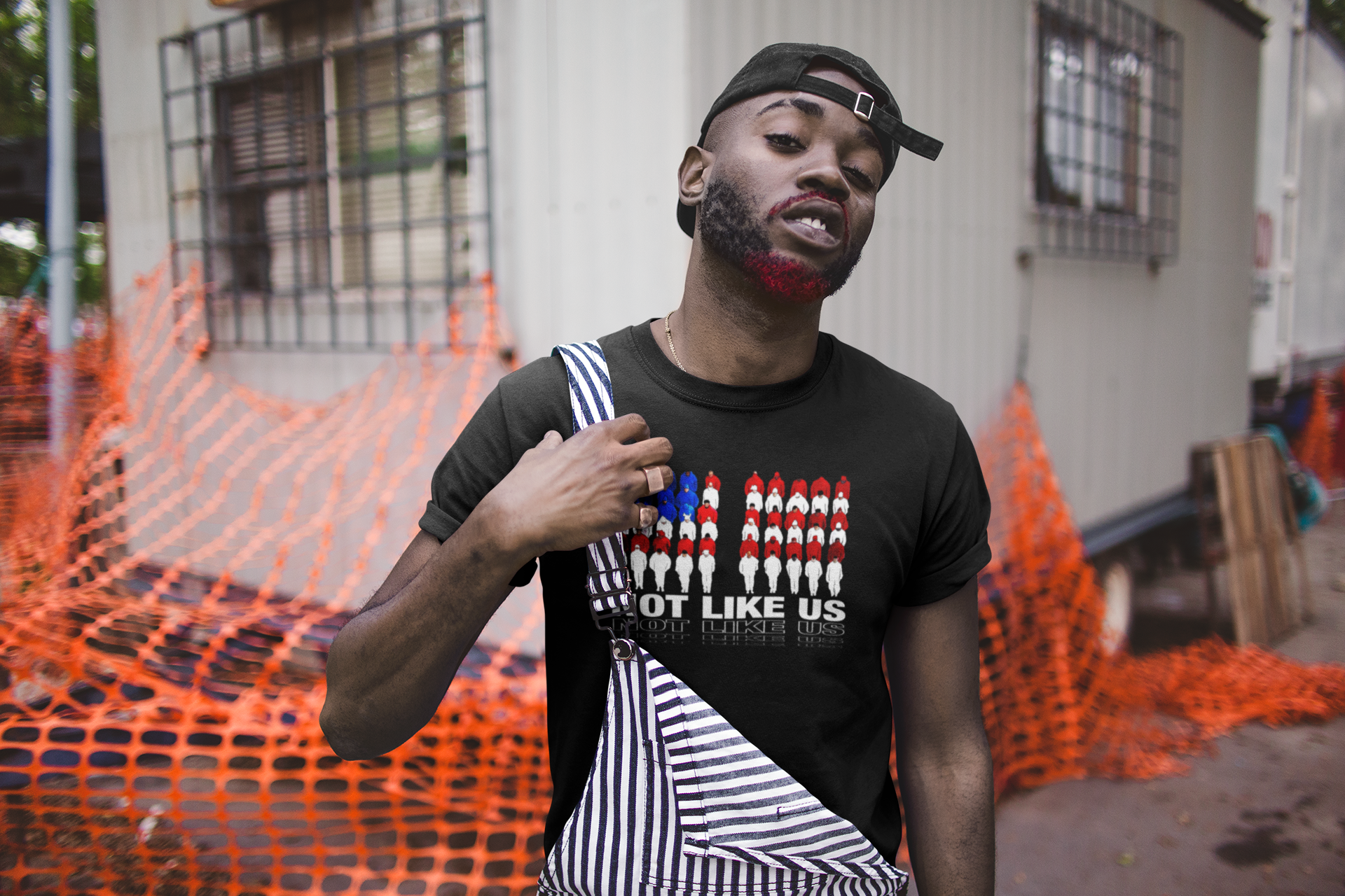 This Kendrick Lamar-inspired tee features an American flag design made of silhouetted figures, echoing the bold message "NOT LIKE US." A stylish statement for fans of culture and meaning.