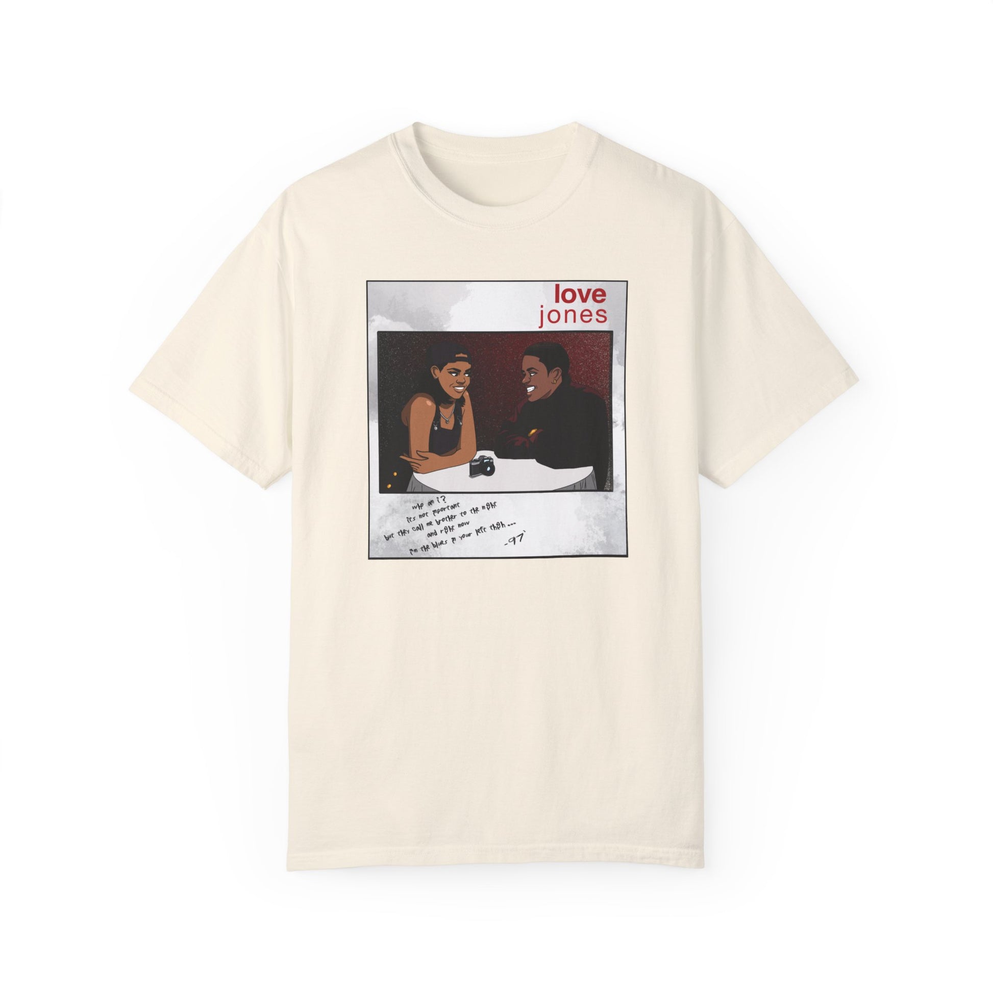 Step into '90s nostalgia with our Love Jones tee, exclusively designed for those who vibe with the era. Featuring bold graphics and vibrant colors, this shirt pays homage to the iconic film and the cultural magic of the '90s.