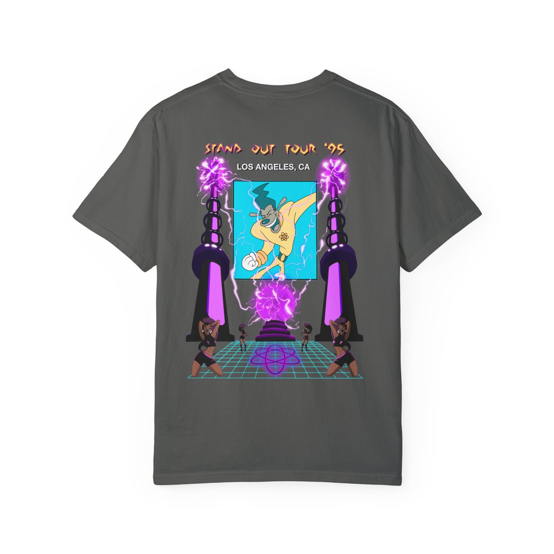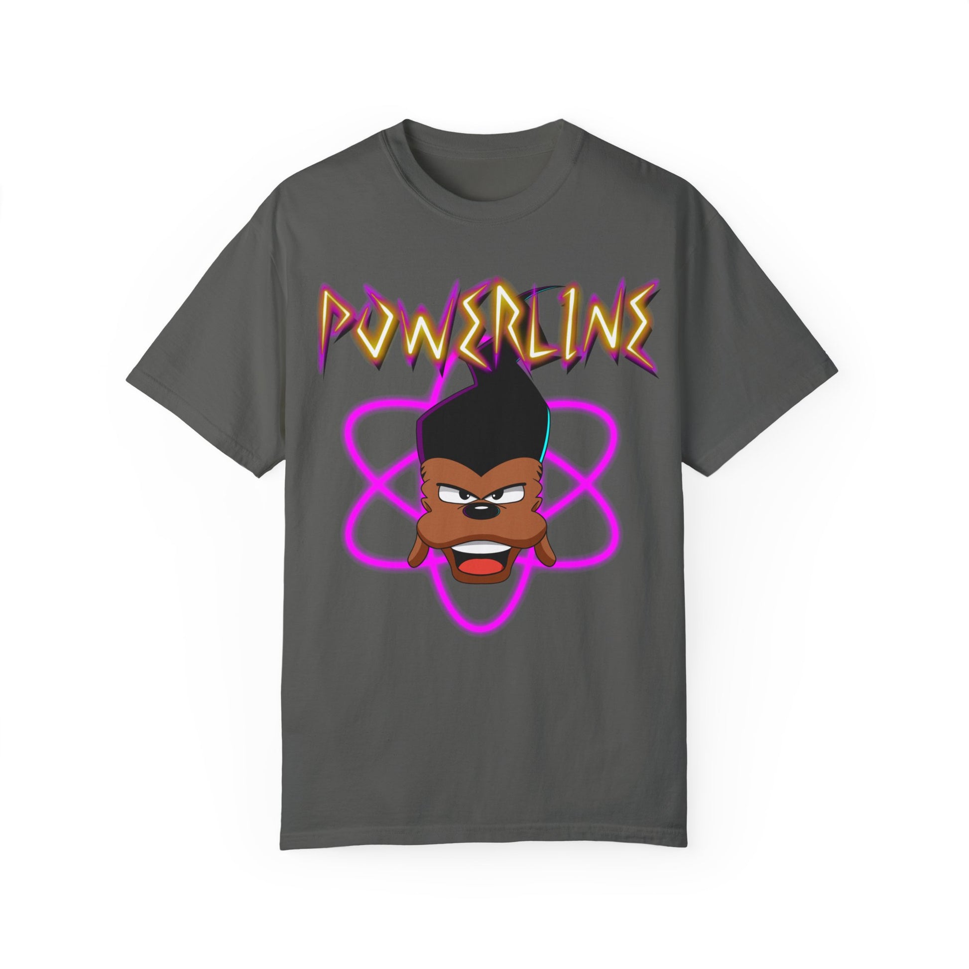 Relive '90s magic with this Power Line concert tee! Inspired by the iconic Goofy Movie, it features Power Line's electrifying stage presence and classic design. Perfect for nostalgic adults, this shirt captures the fun and energy of the fictional pop star that defined a generation.