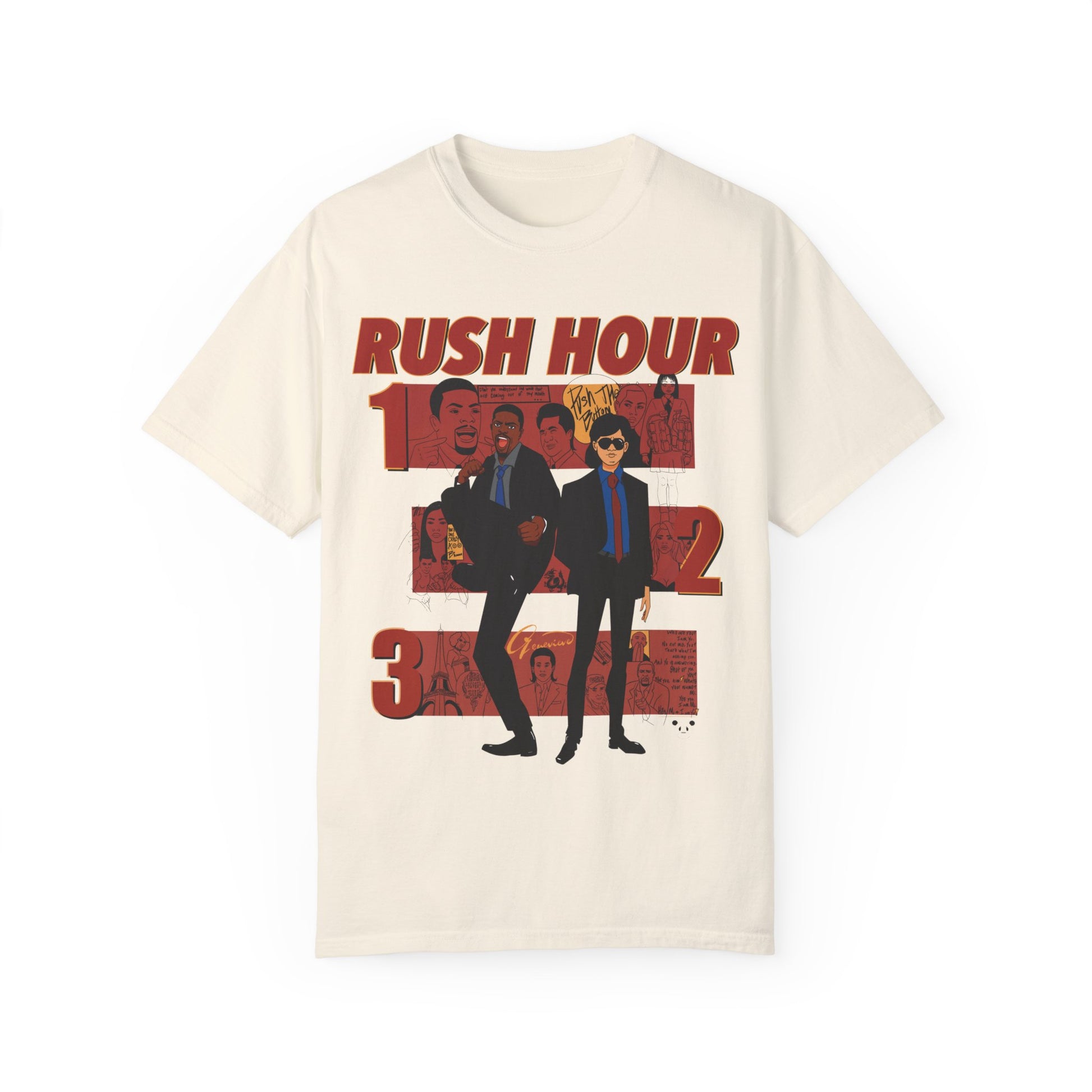"Turn heads with this Rush Hour-inspired graphic tee! Featuring a bold, animated design packed with action, humor, and nostalgia, this is perfect for movie lovers and streetwear fans.