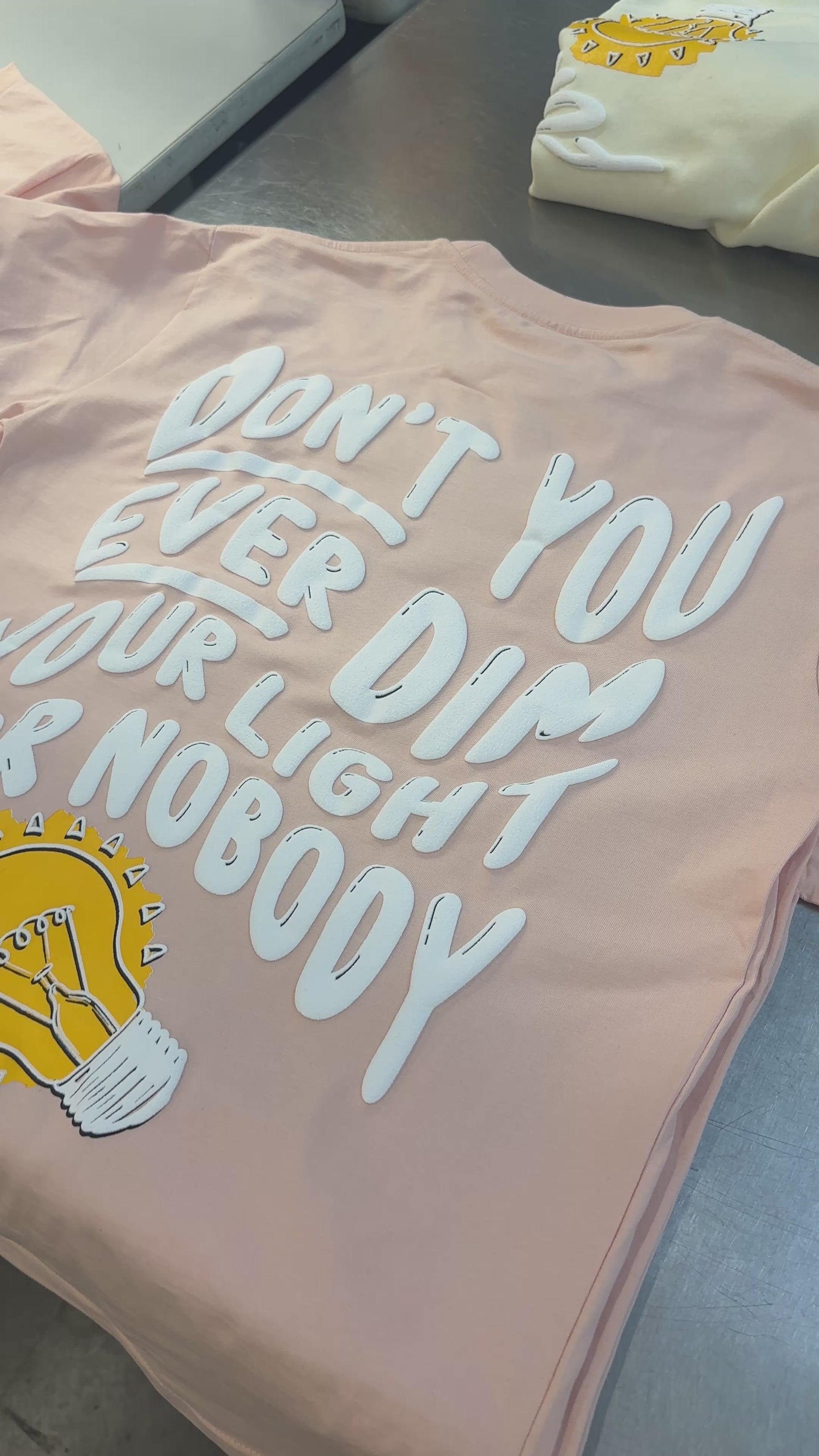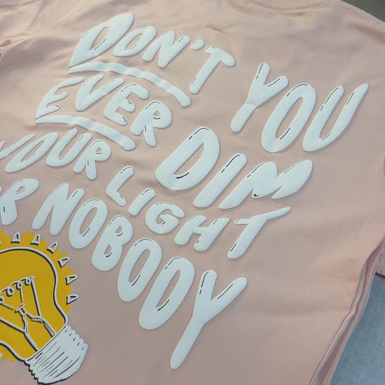 The front design captures a hand-drawn surreal collage of eras and personas, blending color, chaos, and clarity. while the back reads “Don’t You Ever Dim Your Light for Nobody” as a bold affirmation of self-worth.